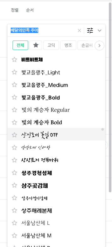 수 백개의 폰트를 상업적 이용가능을 체크하며 하나씩 다운로드 받고