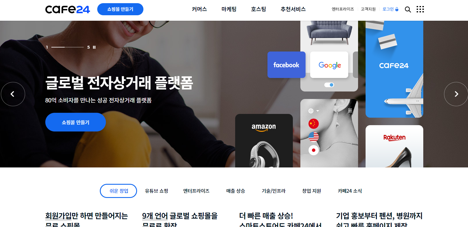 카페24는 국내 최대규모의 호스팅사이면서 쇼핑몰 솔루션으로 유명하죠.