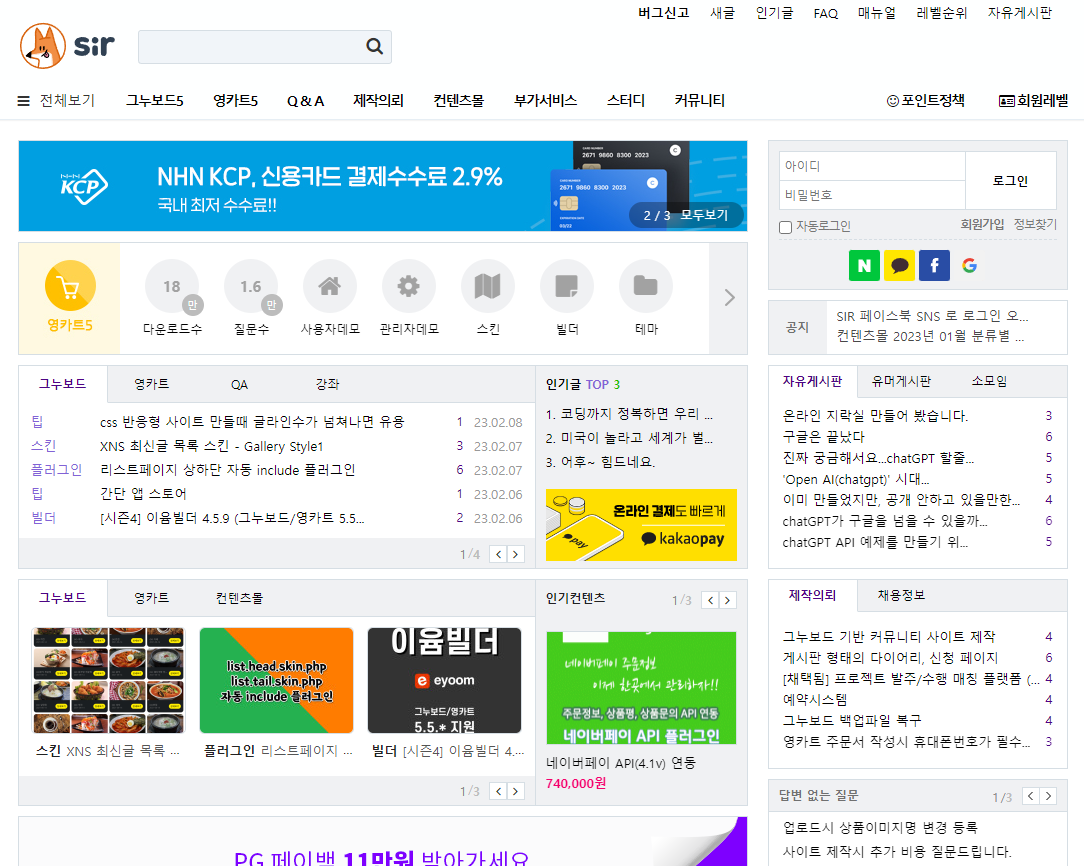 하지만 그누보드에 확장성만은 어떤 솔루션도 따라가기 어려울 정도로 대단합니다.
